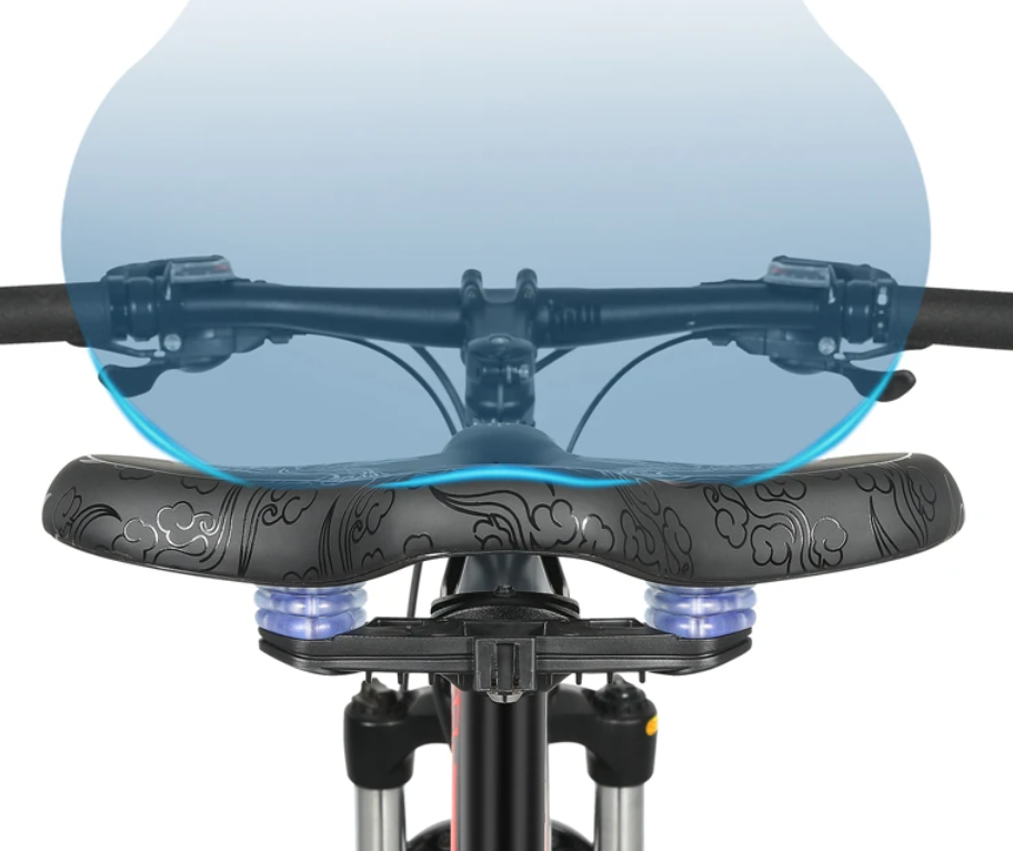 Integrated shock-absorbing bumpers underneath the saddle help reduce road vibrations and improve overall comfort.